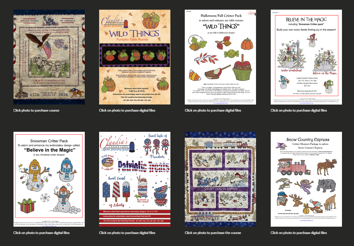 3 days of fun. You'll have to purchase the designs if you are taking Claudia's newest design.